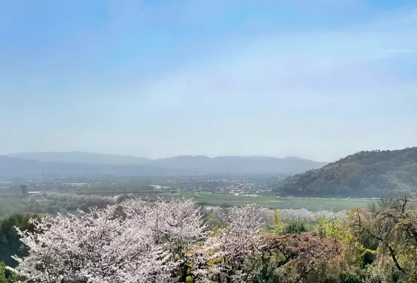 美術館が位置する大山崎町は、京都と大阪の府境に接する自然豊かな地です。桂川・宇治川・木津川の三川が合流するこの地域は、水と緑に恵まれ、古くから風光明媚な地として知られてきました。天王山南麗に建つ山荘のテラスに立つと、川を挟んで対岸の男山、遠くは京都南部から奈良の山々と、雄大な景色が目に飛び込んできます。